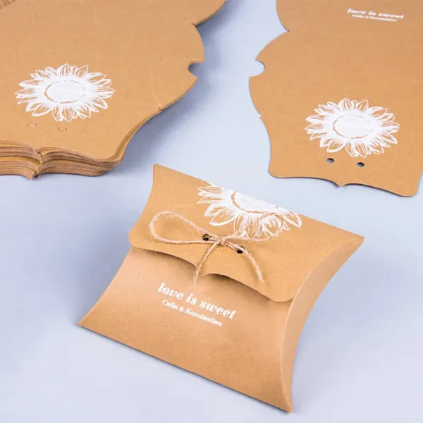 • Wedding and Event Favors: Custom kraft pillow boxes are commonly used to package wedding favors, party favors, or corporate giveaways. The eco-friendly nature of kraft paper aligns with modern event trends that emphasize sustainability.