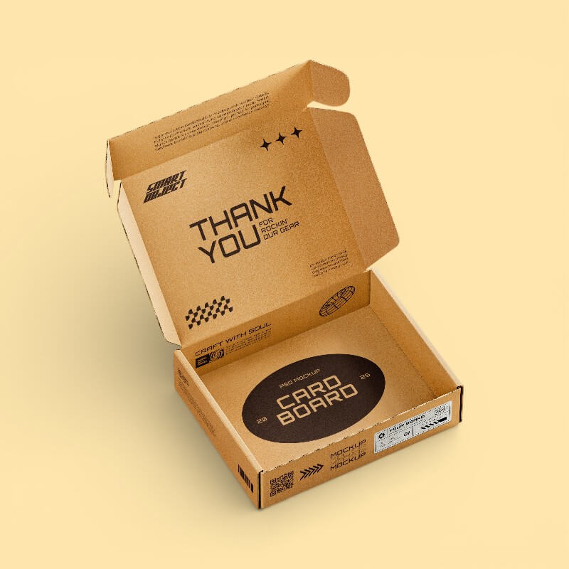 We apply a thin plastic film over the paper to make your boxes strong and keep them from ever tearing.