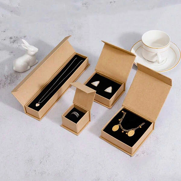 Kraft paper is a natural and biodegradable material that offers a rustic yet elegant appearance. It is highly durable and recyclable, making it an excellent choice for eco-friendly jewellery boxes and pouches.